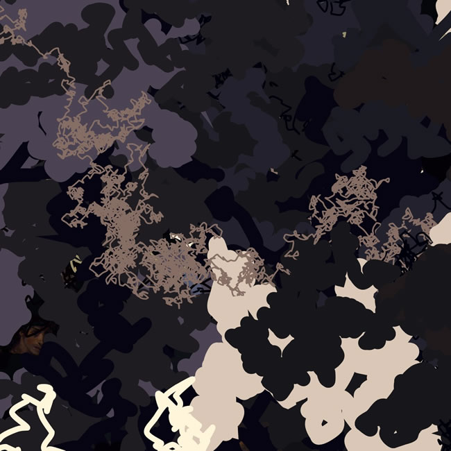 The piece exhibited uses Eugène Delacroix's iconic 1830 painting as its source: Liberty Leading the People (La Liberté guidant le peuple). From this a group of separate elements are born, each of which have their own set of randomly assigned characteristics but whose colour values are derived from the position on the painting that they first appear. They set off on their own journeys, and their tracks across the screen act like brushstrokes, the remnant traces of their past. The result is a changing and shifting composition, which is different each time it runs.