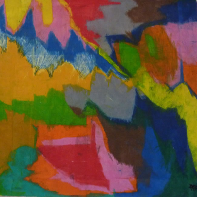 Ross has a unique talent. He is autistic and expresses his creative, warm nature through artwork with pastels. His work changes dependent on the type of medium he is working on. With vibrant defined spaces on canvass, and unique layering on cardboard, each colour is chosen with a space and purpose in mind. He creates bright, colourful pieces which appear abstract, yet his approach to working, placing then blending colour, and positioning shapes together, is highly considered. People often interpret the pieces for themselves: seeing landscapes or people in the shapes he draws.